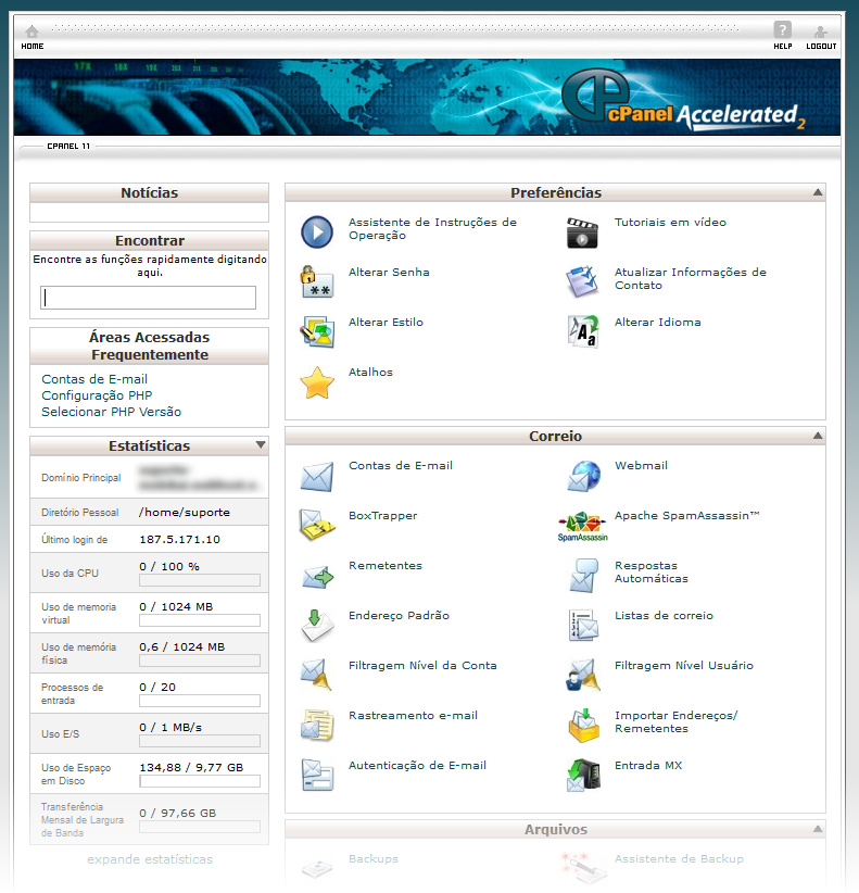 O melhor painel do mercado e o mais usado no mundo inteiro, você tem aqui, completo e em Português! Administre sua hospedagem de forma fácil e intuitiva e tenha independência para gerenciar, você mesmo, quase todos os aspectos de sua conta.