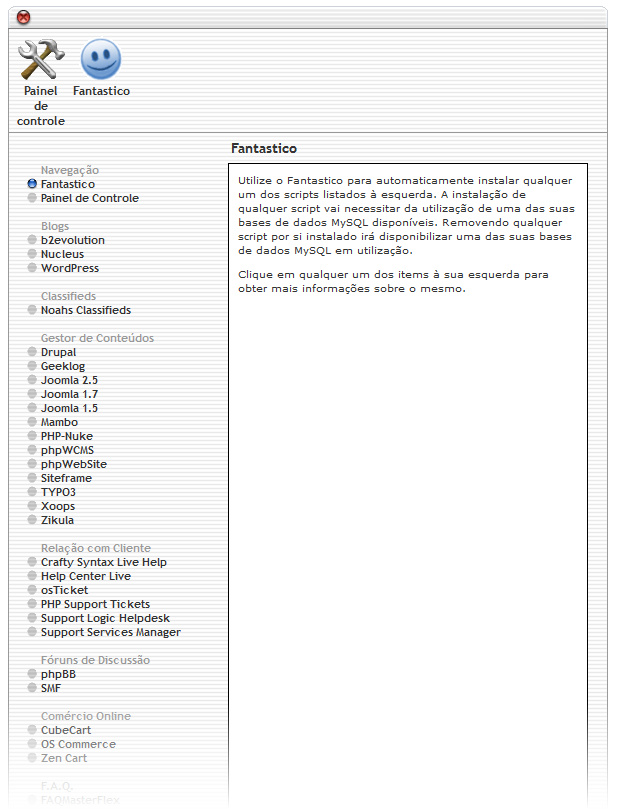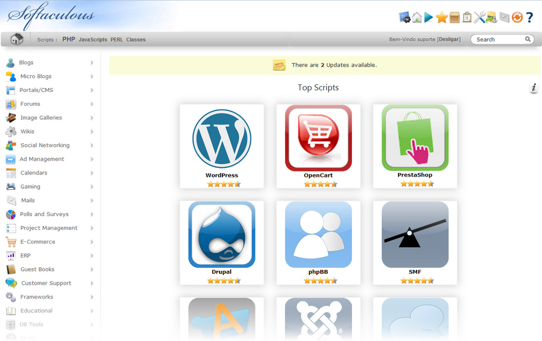 Instale com apenas alguns cliques os melhores scripts da web com o melhor instalador da web, o Softaculous: Wordpress, Joomla, Moodle, Drupal, Magento, etc.