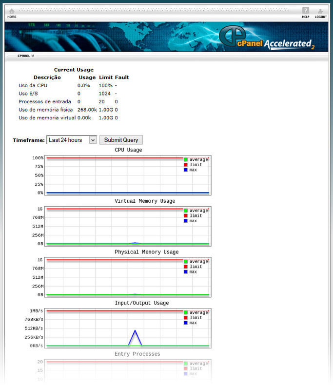 Utilizamos o CloudLinux como SO, que oferece mais segurança para ambientes compartilhados, evitando que uma ou mais contas, sobrecarreguem o servidor e prejudiquem outros clientes. No cPanel, você tem o controle, em tempo real, do consumo de sua conta em relação aos recursos do sistema, alocados para ela, tais como CPU (processador), RAM (memória), etc.