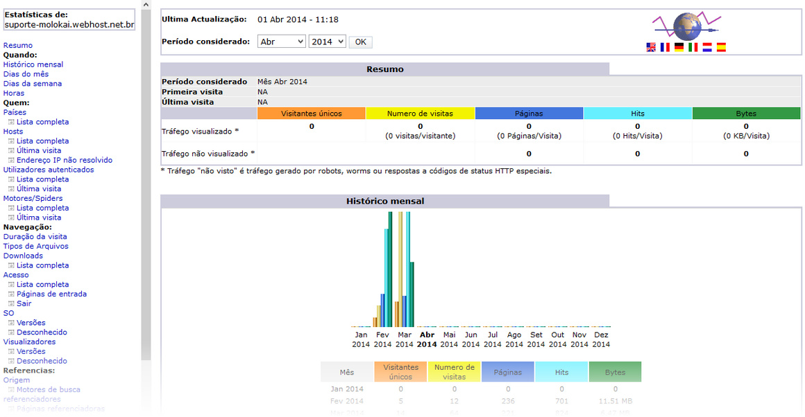 Oferecemos várias ferramentas de análise de acessos, como AWStats, Logaholic, Webalizer e Analog, para você ter controle de dados importantes sobre a visitação dos seus sites. Você também conta com o auxílio dos arquivos de log do webserver (error_log), etc.